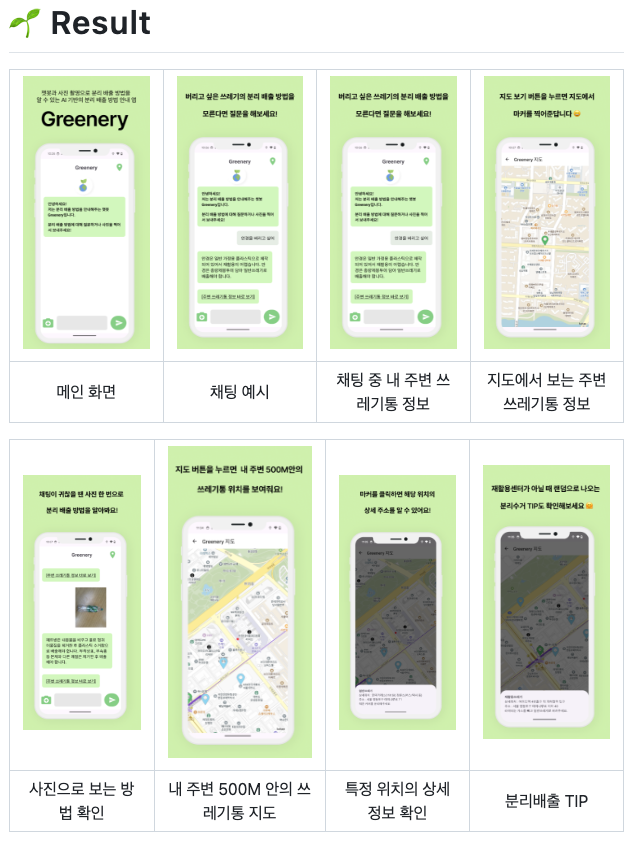 Greenery 앱을 통해 이용자가 복잡한 분리 배출 방법으로 인해 스트레스를 받지 않고, 환경 보호에 동참할 수 있도록 도와주는 것을 목표로 하고 있음